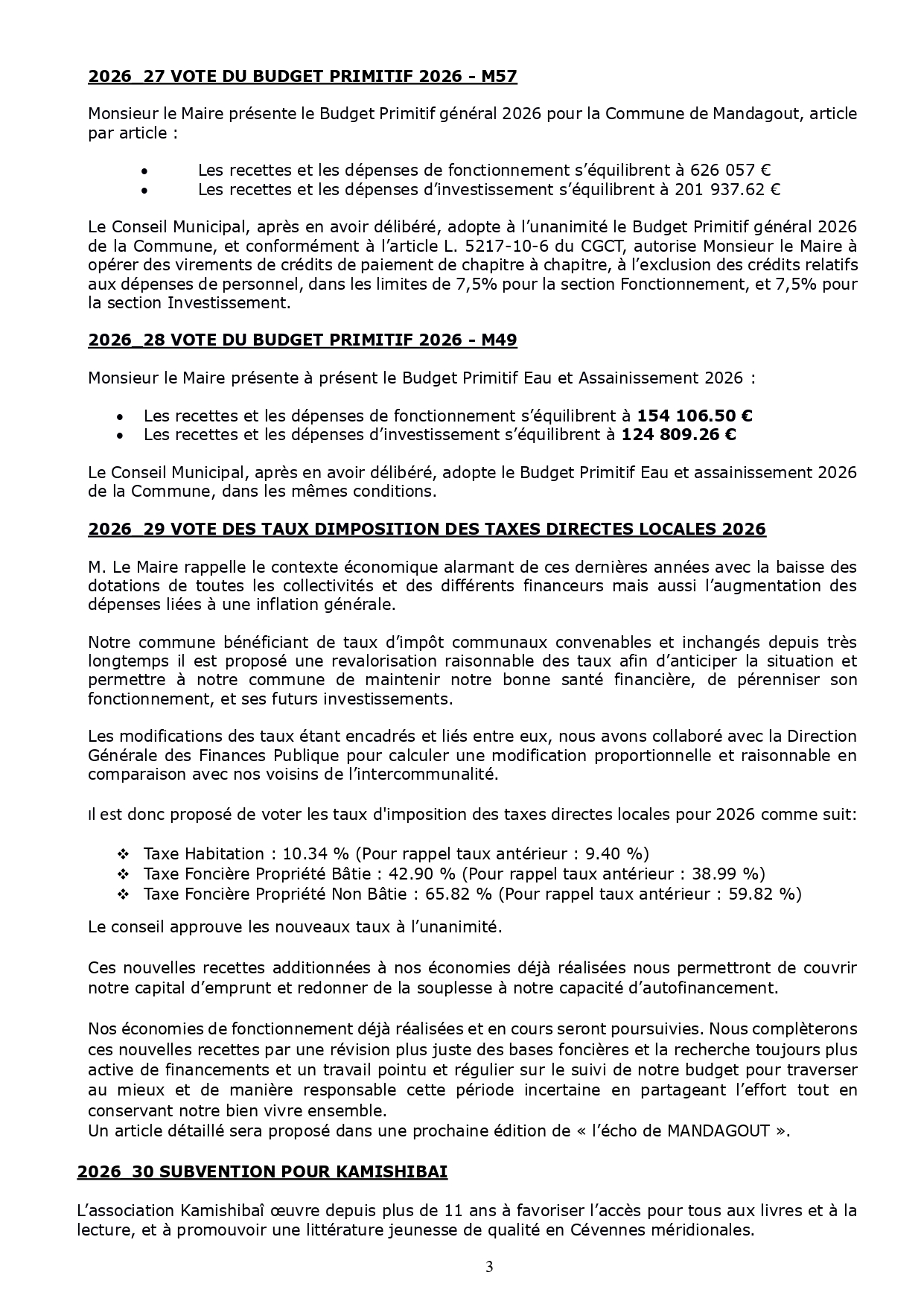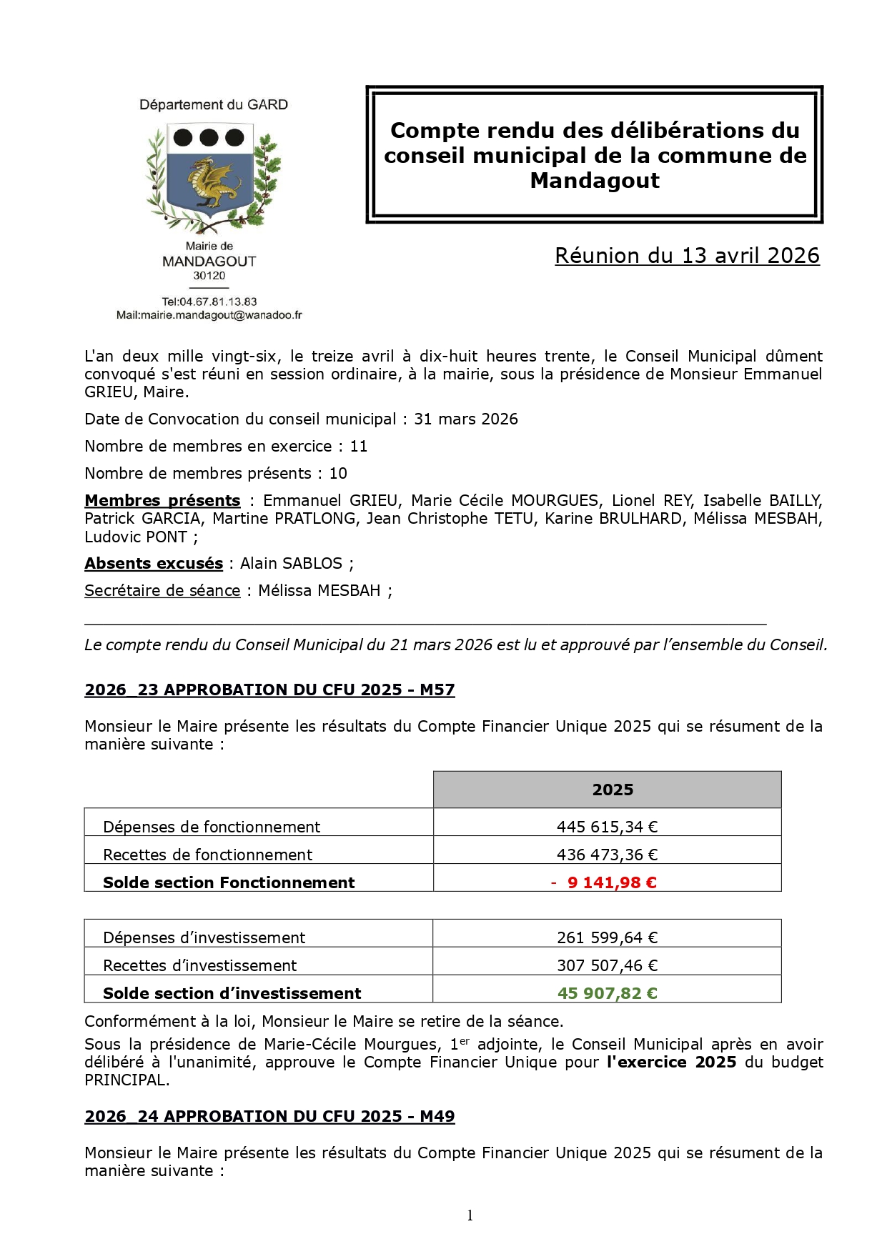 Compte rendu du Conseil Municipal du 13 avril 2026